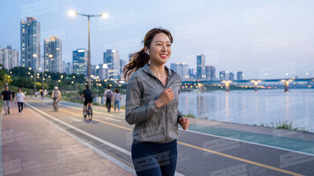 한강변을 달리는 여성 러너 / Female runner along the Han River (4-image pack)