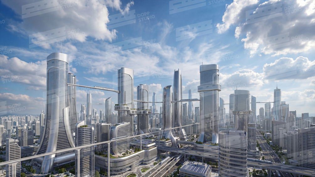 전광판에 침투한 홀로그램 로봇_롱 샷 / a holographic robot penetrating an electronic displayAn AI-generated image...붕괴되는 건물 4 / Collapsing building