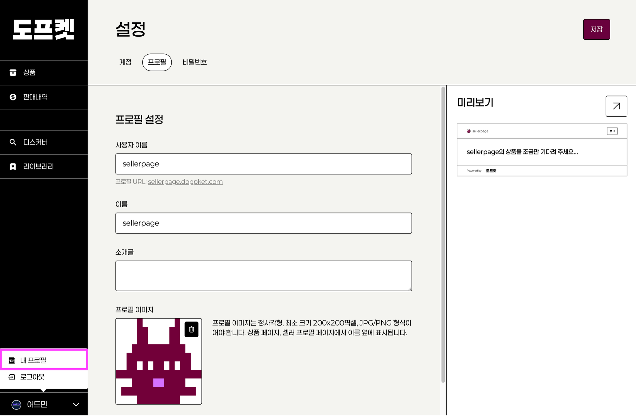 - 나만의 셀러 페이지(프로필 페이지) 자동 생성