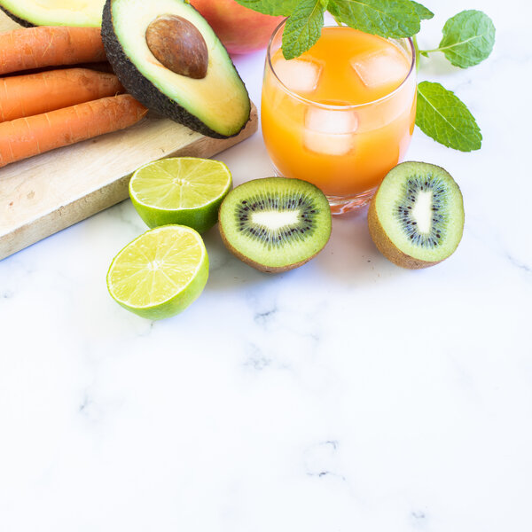 신선한 주스와 재료